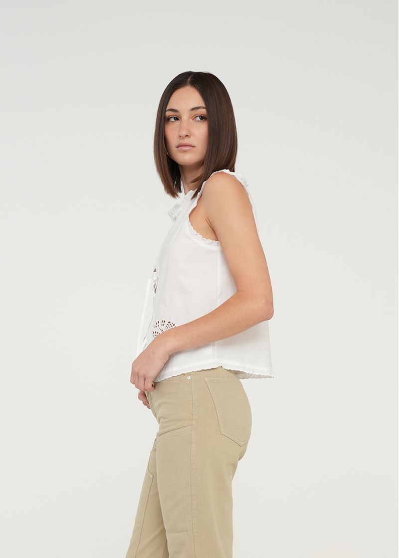 • Escote abierto con tiras para anudar.