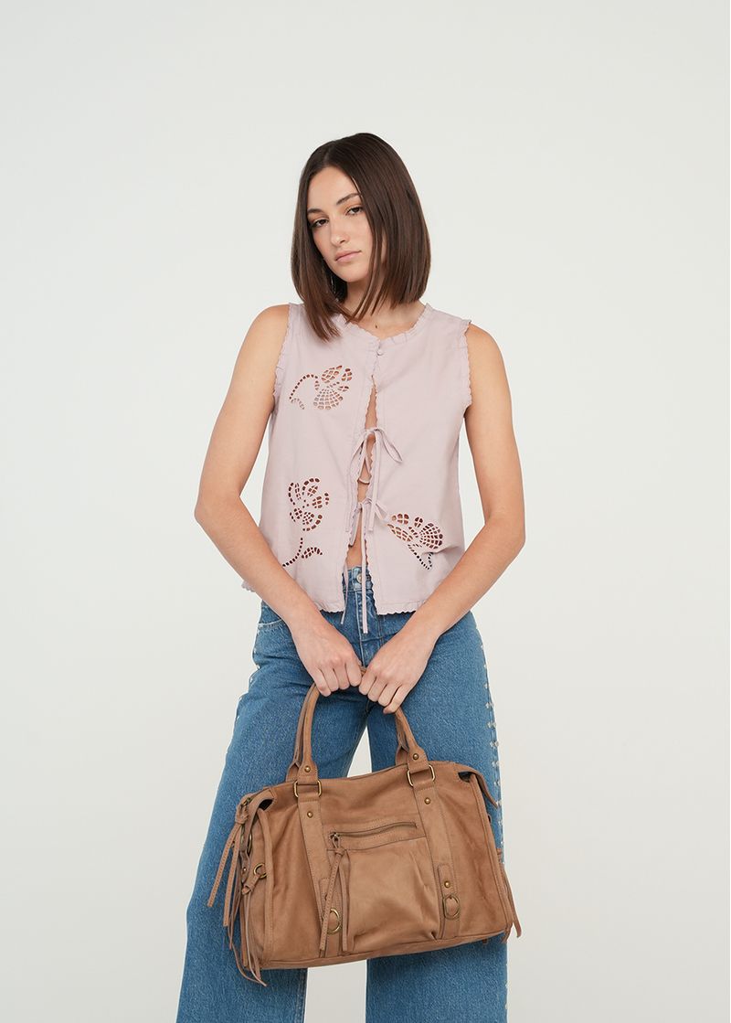 • Escote abierto con tiras para anudar.