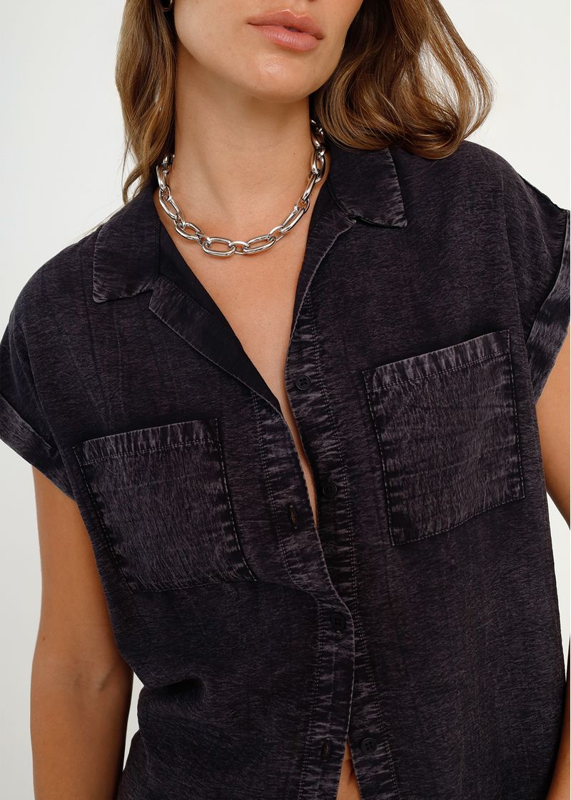 Camisa en tipo denim manga corta