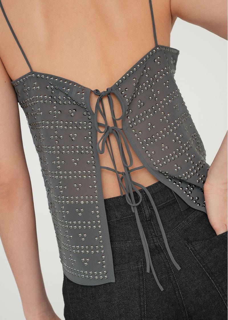 • Escote en espalda para anudar.