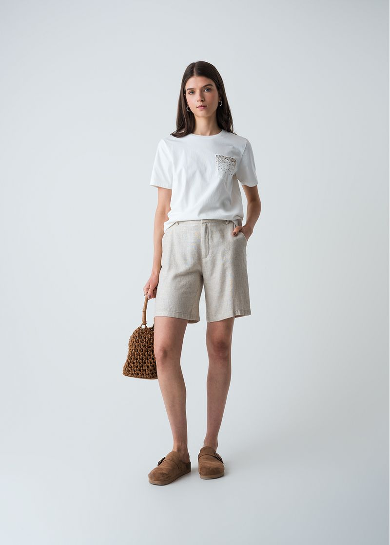 • Diseño con apliques brillantes en bolsillo.