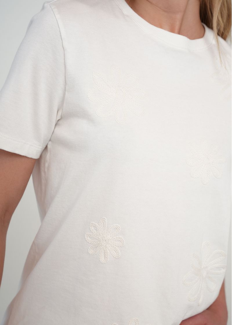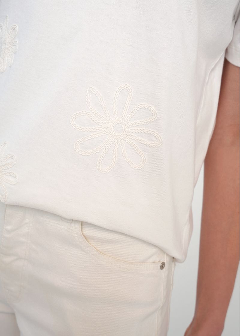 • Flores bordadas a tono.