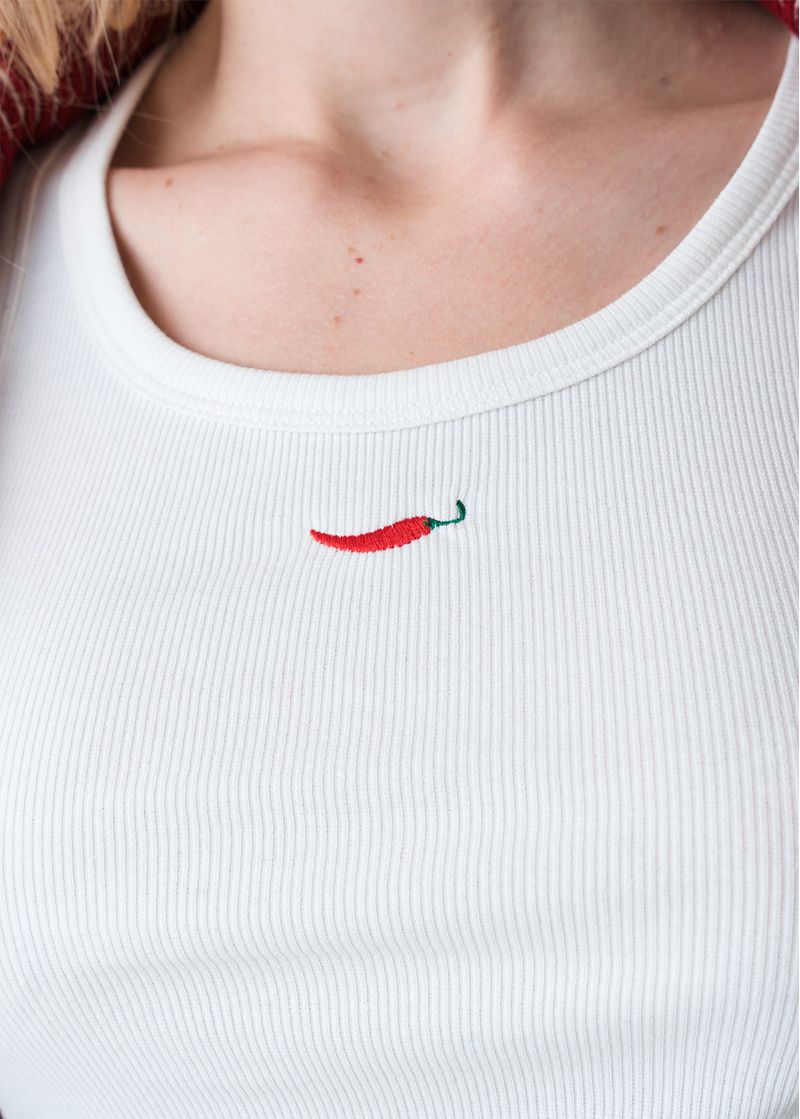 • Detalle de chile bordado en frente.