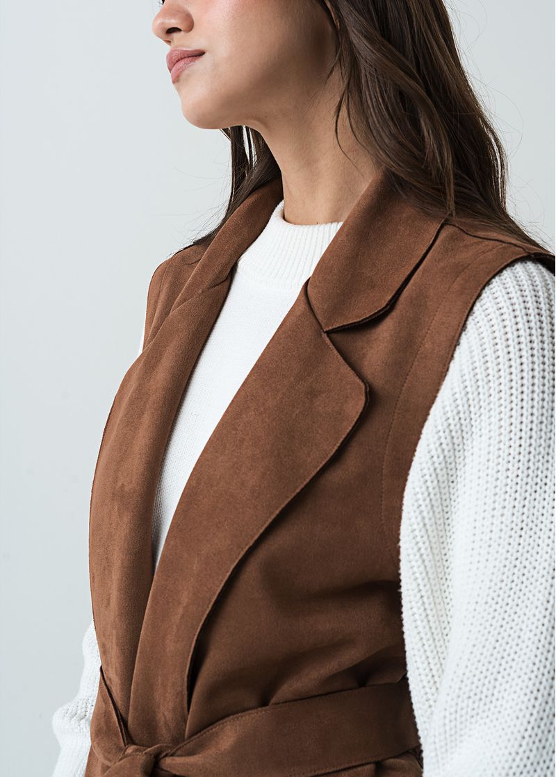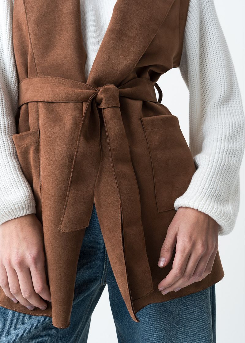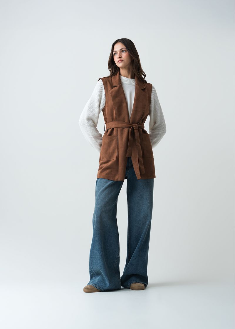 Ropa MujerChaquetasChaleco largo en tela tipo gamusa