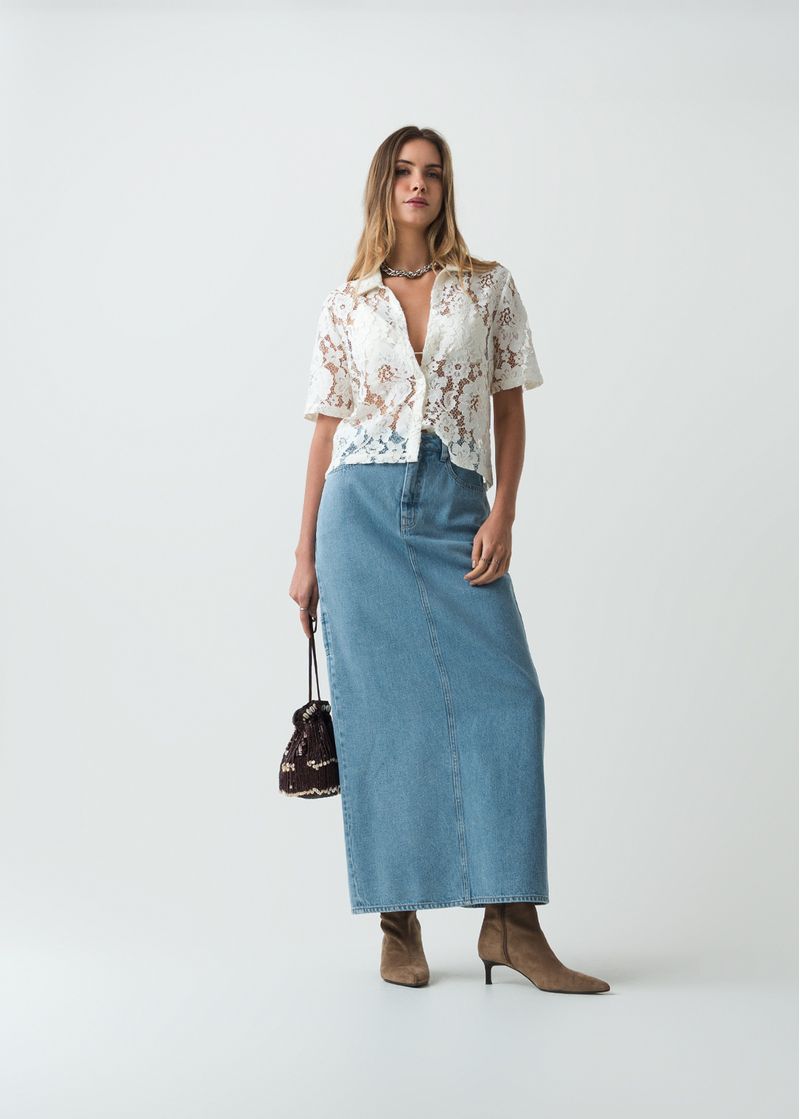 Falda en denim tono medio