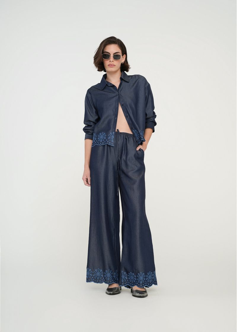 • Diseño con bordado floral desagujado en ruedo.