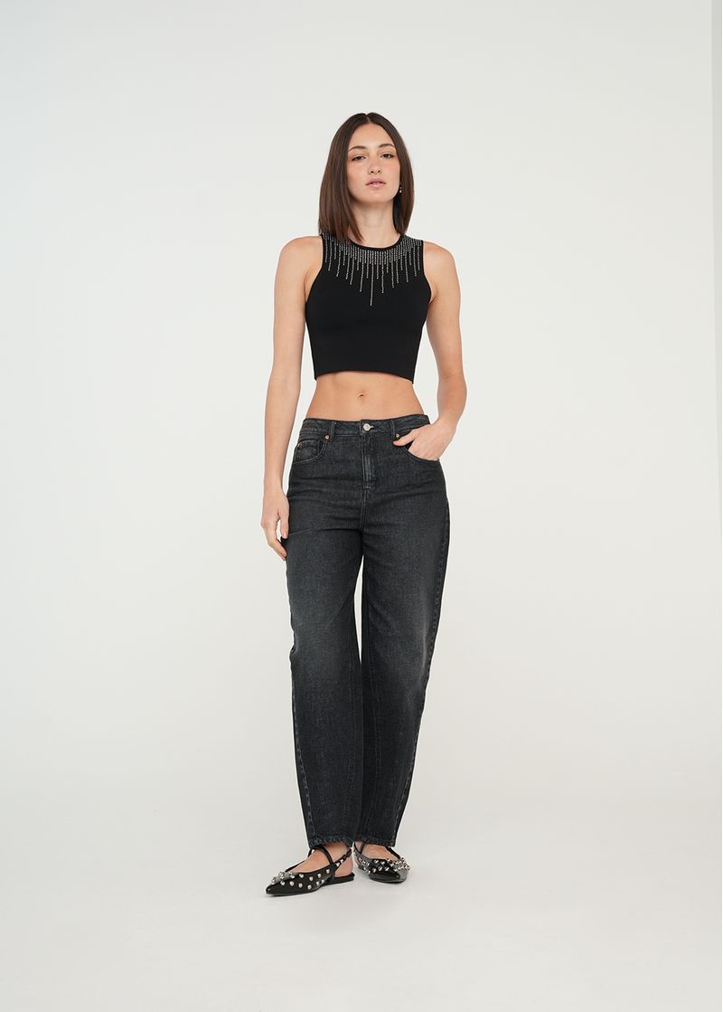 • Llévala con prendas en denim holgadas para unas vibras de temporada únicas.